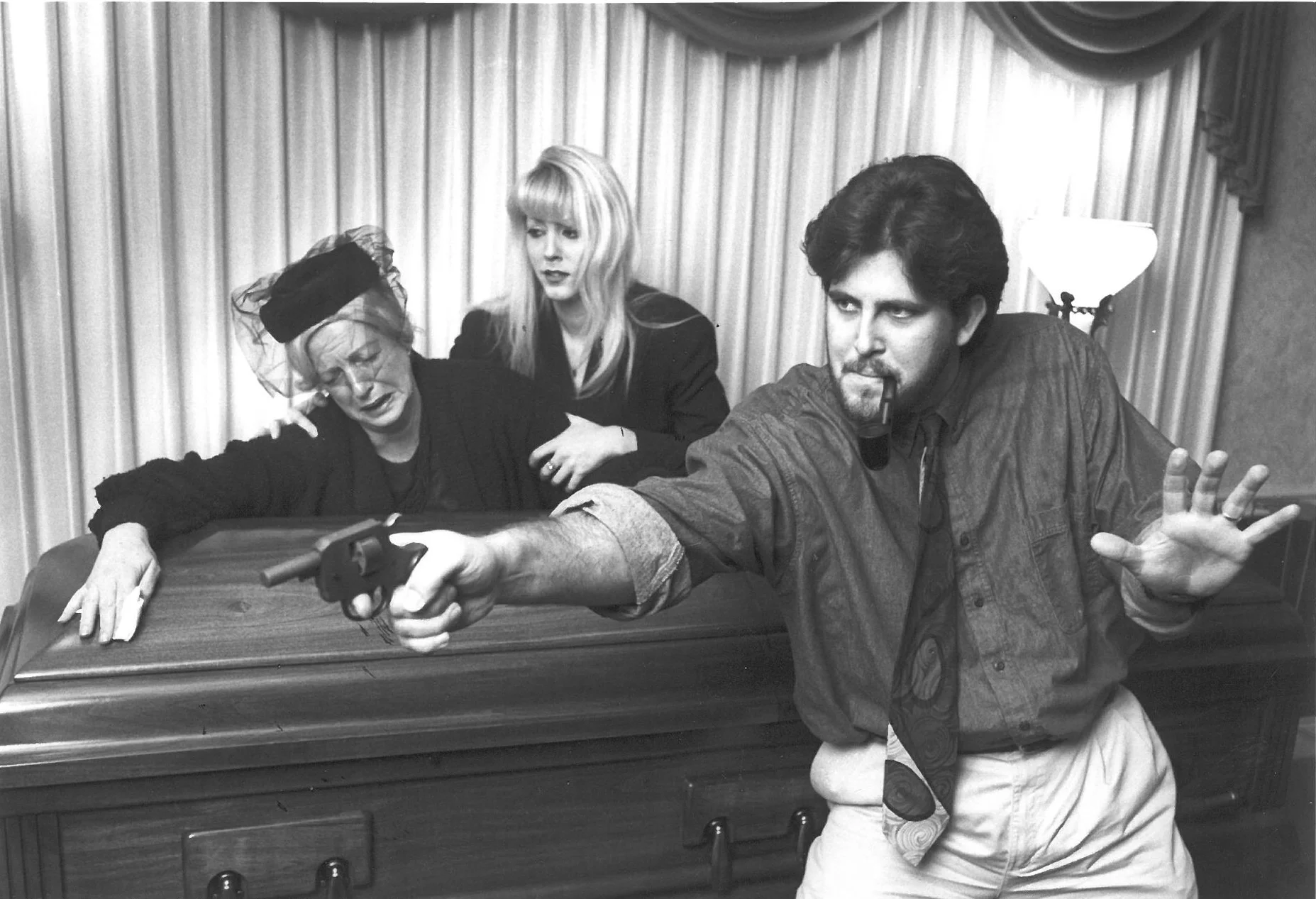 Mysteries by Moushey are a combination game, party, and theatrical production. Each event is as much comedy as mystery! It begins as the audience enters and the actors, in character, circulate, establish relationships, and stage improvisational scenes — all of which “set up” the mystery that will unfold and that the audience will solve! It's mystery, mirth, and mayhem!